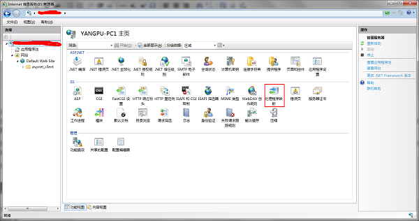 打開IIS管理工具,選擇“處理應(yīng)用程序映射”。