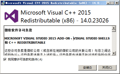 找到原因之后,解決方案就比較簡單了,百度搜索找一個VC14庫,安裝就可以了。