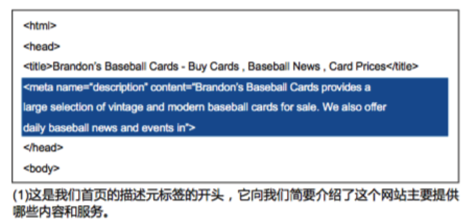 請注意避免 : 與網(wǎng)頁實(shí)際內(nèi)容不相符的描述元標(biāo)簽; 過于寬泛的描述 , 比如“這是一個(gè)網(wǎng)頁”或“關(guān)于棒球卡的網(wǎng)頁”等 ;在描述部分堆砌關(guān)鍵詞 ;把網(wǎng)頁的所有內(nèi)容都復(fù)制到描述元標(biāo)簽中