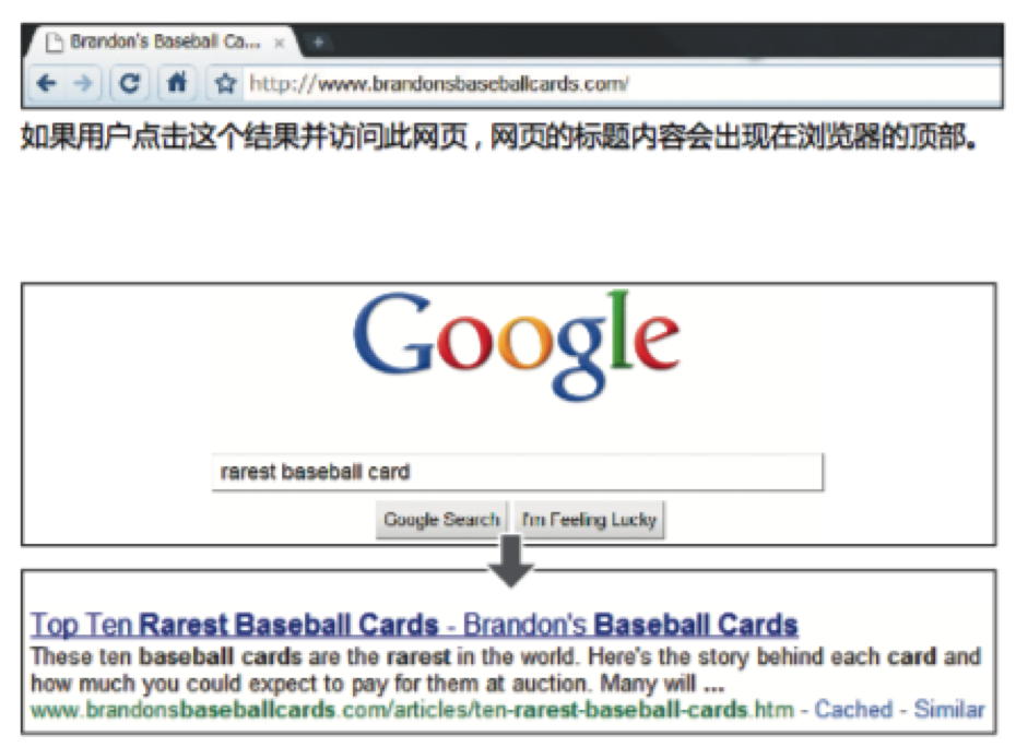 標(biāo)題標(biāo)簽告訴用戶和搜索引擎一個(gè)特定網(wǎng)頁的主題是什么(主題的重要性可以查看:Google SEO*重要的幾個(gè)點(diǎn) )。title 標(biāo)簽通常放在HTML文檔的 head 標(biāo)簽內(nèi)。